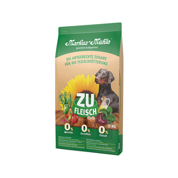 Durch eine ausgewogene Ernährung sorgen Sie dafür, dass es Ihrem Hund gut geht und er gesund bleibt. Als Ergänzung zur proteinreichen Fleischfütterung wurde Markus Mühle ZUFLEISCH entwickelt. Die praktischen und leckeren Pellets werden im Kaltpress-Verfahren hergestellt und können einfach unter das Fleisch gemischt werden.