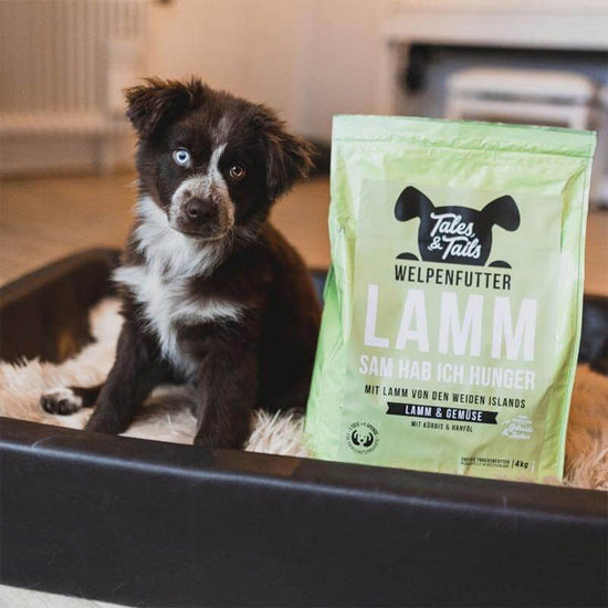 LammSam hab ich Hunger! LammSam entwickelt Ihr kleiner Liebling einen Bärenhunger und damit er sich nicht einfach nur den Bauch vollschlägt, sondern auch mit allem versorgt wird was er braucht um gross und stark zu werden, hat Tales & Tails dieses lammtastische & leckere Welpenfutter entwickelt.