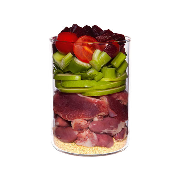 Terra Canis Classic-Menüs setzen sich aus einem hohen Anteil an Muskelfleisch (dazu gehören klassisches Muskelfleisch sowie Herzmuskelfleisch und Mägen, welche muskuläre Hohlorgane sind), einem geringen Anteil nährstoffreicher Leber sowie viel frischem, gesundem Gemüse, Obst und Kräutern zusammen. Es wird ausschliesslich nährstoffreiches, glutenfreies Pseudogetreide (z. B. Hirse, Amaranth, Naturreis) in einer sehr geringen, für den Hund leicht verdaulichen Menge (4% – 10%) ergänzt. Die natürlichen Zusätze (Seealge, Mineralerde, Blütenpollen, Hagebutte, Andensalz, Bierhefe) liefern wichtige Vitamine und Mineralstoffe und Spurenelemente. Hochwertiges, an Omega-3-Fettsäuren reiches Rapsöl rundet diese Menüs ideal ab. Alle Rohstoffe besitzen 100 % Lebensmittelqualität. Die Menüs sind geeignet für alle normalgewichtigen, erwachsenen Hunde jeder Rasse.