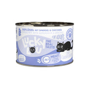 Lucky Lou's food is made from cat-friendly ingredients. This means it contains no grains, no rice, and, above all, no sugar. Instead, the food contains a particularly high amount of meat or fish, ensuring a particularly intense and delicious flavor every time!