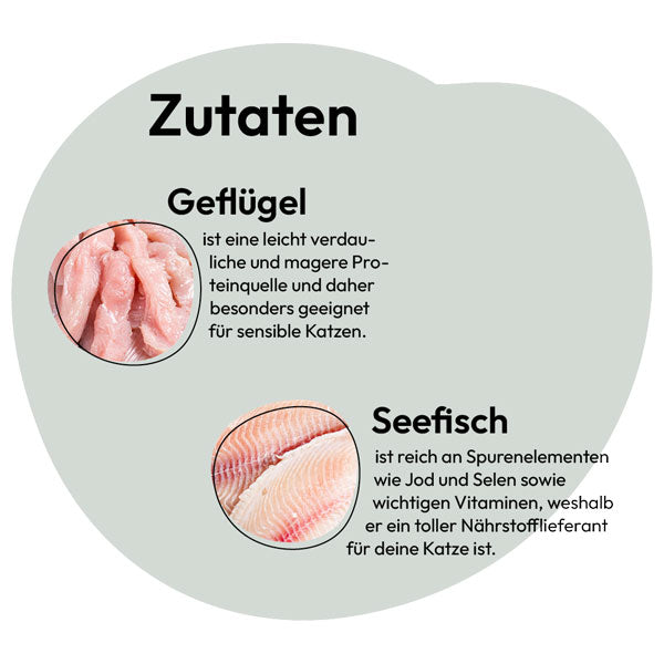 This balanced duo scores highly as a grain-free option with a high meat content. Easily digestible poultry combined with nutrient-rich fish is particularly gentle and perfect for cats with nutritional sensitivities.