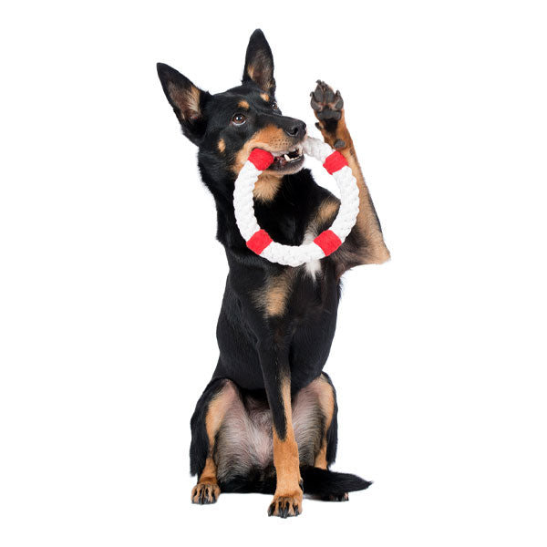 All LABONI TOYS are hand-knotted from pure cotton, tested by TÜV Süd according to the Children's Toy Safety Directive, and machine washable at 30°C. A great side effect is the teeth-cleaning effect of the cotton fibers, which makes them not only decorative but also offers your four-legged friend real added value and promises healthy playtime fun. You and your furry friend won't want to be without this high-quality toy from LABONI!