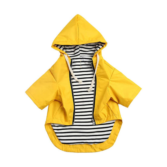 Perfectly dressed for wind and weather. This raincoat is a great addition to your dog's wardrobe, protecting your four-legged friend from cold and wet weather when the weather isn't so good. The coat is made of high-quality materials, featuring a water- and wind-resistant outer fabric and a warm lining with nautical stripes.