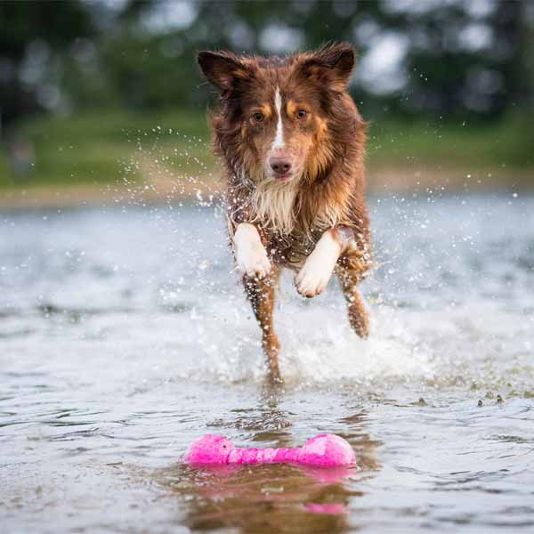 And best of all: These extremely durable and chew-resistant dog toys are made of natural rubber, are naturally dyed, and are therefore completely safe for your pet. Thanks to their bright colors, the dumbbell is easy to see even in murky water or rough seas. The Dog Fun Gym sits horizontally in the water.