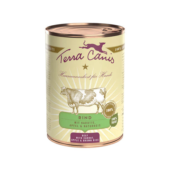 Terra Canis Classic-Menüs setzen sich aus einem hohen Anteil an Muskelfleisch (dazu gehören klassisches Muskelfleisch sowie Herzmuskelfleisch und Mägen, welche muskuläre Hohlorgane sind), einem geringen Anteil nährstoffreicher Leber sowie viel frischem, gesundem Gemüse, Obst und Kräutern zusammen. Es wird ausschliesslich nährstoffreiches, glutenfreies Pseudogetreide (z. B. Hirse, Amaranth, Naturreis) in einer sehr geringen, für den Hund leicht verdaulichen Menge (4% – 10%) ergänzt. Die natürlichen Zusätze (Seealge, Mineralerde, Blütenpollen, Hagebutte, Andensalz, Bierhefe) liefern wichtige Vitamine und Mineralstoffe und Spurenelemente. Hochwertiges, an Omega-3-Fettsäuren reiches Rapsöl rundet diese Menüs ideal ab. Alle Rohstoffe besitzen 100 % Lebensmittelqualität. Die Menüs sind geeignet für alle normalgewichtigen, erwachsenen Hunde jeder Rasse.