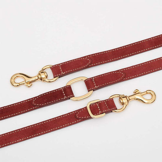 Die Hundeleine Lambrusco verkörpert leidenschaftliches Design. Das weinrote Wildleder gepaart mit dem Ton in Ton passenden Nappaleder und der feinen, weissen Kontrastnaht, garantieren einen edlen Auftritt – Tag für Tag.Wie bei jeder Hundeleine, setzt William Walker ausschliesslich auf beste Materialien und durchdachtes Design. Die dreifach verstellbare Variante garantiert für jeden Hund die optimale Leinenausführung. Die Beschläge aus hochwertigem goldenen Messing runden dieses edle Hundeleine optimal ab.